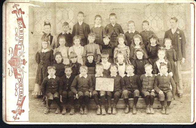 This picture is supposedly of Pillowell School children and staff, dated to the late 19th century it is very faded and the only identification is a note to the rear.